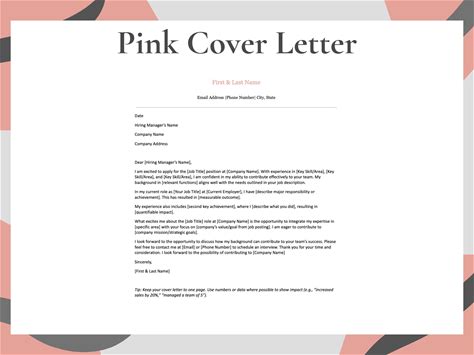Cover Letter Template, Professional Editable Design For Word & Google Docs, Pink Edition