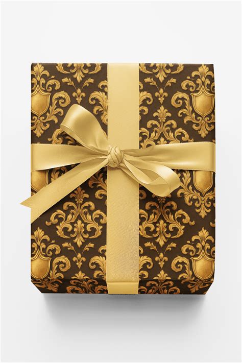 Antique Gold Damask Crest: Premium Baroque & Elegant Wrapping Paper - London Penny