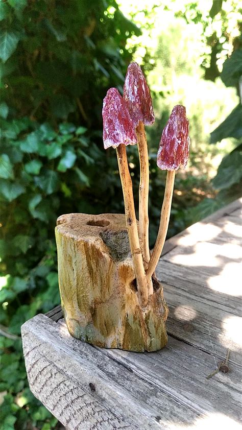 Fairy Toadstool, Wooden Mushroom Sculpture, Fungi Figurine Forest Statue Amanita