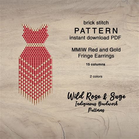 MMIW Stolen Sisters Red Dress Seed Bead Fringe Earring Pattern | Brick Stitch Seed Beaded Pattern | Indigenous Western Fringe Earring