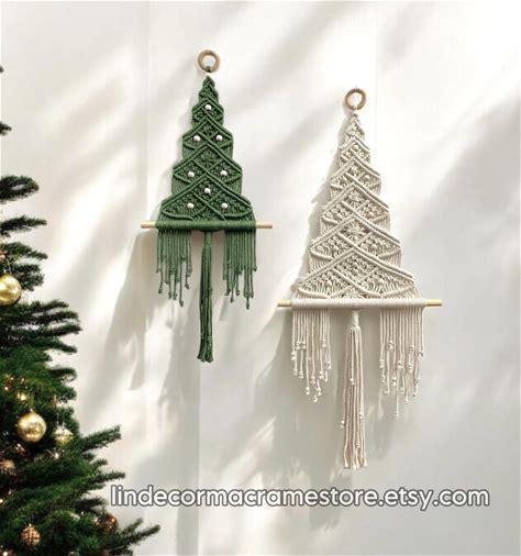 Macrame Christmas Tree White Wall Hanging: Boho Farmhouse Christmas Decor, Elegant Winter Wall Decor