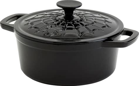 3QT Enamel Cast Iron Covered Cast Iron W/ Spiderweb Embossed Lid - Black