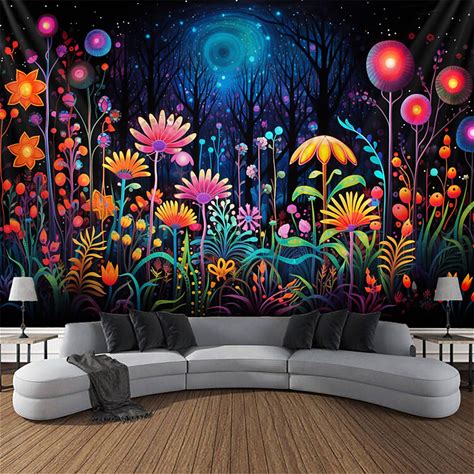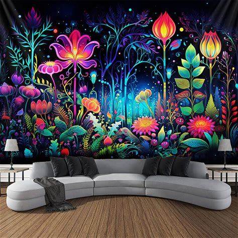 Blacklight Tapestry UV Reactive Glow In The Dark Flower Trippy Misty Nature Landscape Hanging Tapestry Wall Art Mural For Living Room Bedroom