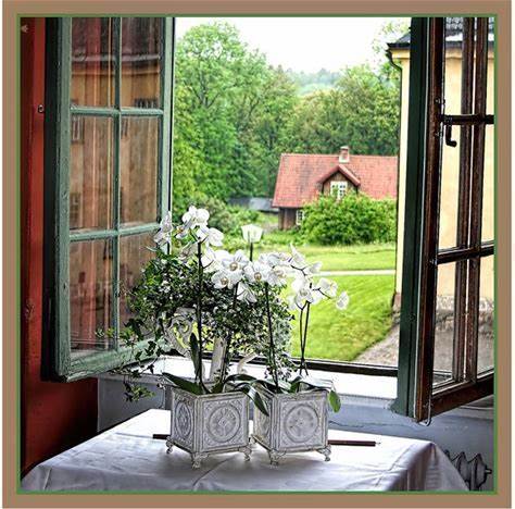 Open Window Summer View Art Print, White Flowers