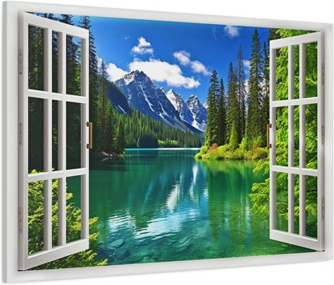 Window View Canvas - Lake And Mountains View From Open Window Painting - Green Nature Landscape Wall Art Print Ready To Hang
