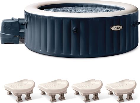 Intex 28431EP Purespa Plus Portable Inflatable Hot Tub Bubble Jet Spa, 85" X 28" & Slip Resistant Inflatable Hot Tub Seat Spa Accessory (4 Pack)