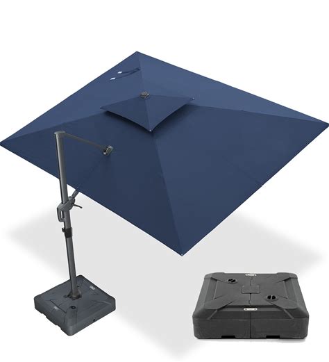 PURPLE LEAF 10' X 13' Patio Umbrella With Base Outdoor Cantilever Rectangle Offset Umbrella With 360-Degree Rotation For Garden Deck Pool Patio Navy
