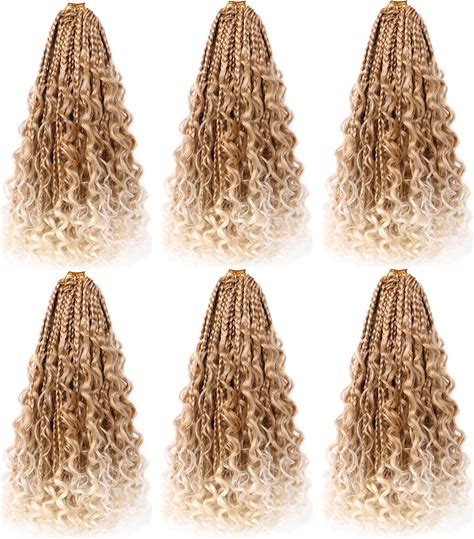 Flosius 6 Packs Goddess Box Braids Crochet Hair With Curly Ends 14 Inch Ombre Blond Short Crochet Box Braids Synthetic Braiding 3X Bohemian Crochet