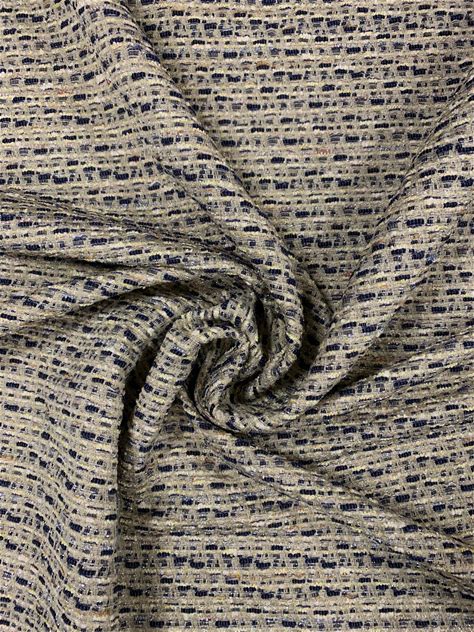 Italian Cotton Tweed Fabric: Beige, Blue, Lurex Threads