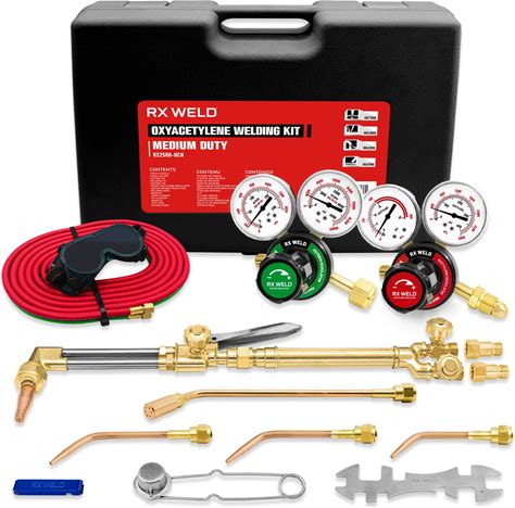 RX WELD Medium Oxy Acetylene Torch Kit, 12 PCS Welding Cutting Brazing Torch Set With Check Valves & Tips - Safety Certified For Metalworking, Repair,