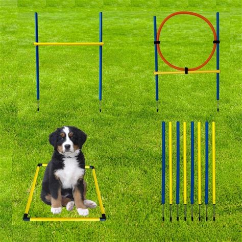 Pawhut Dog Agility Training Set Adjustable Obstacle Course With Weaves Poles Storage Bag | Aosom.Com