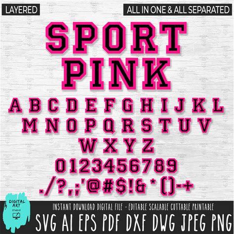 Pink Varsity Font, Sport Letters Numbers, SVG PNG (Digital Download)