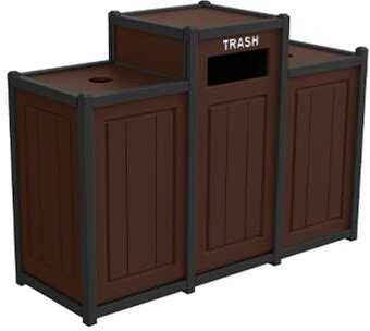 Two-Tone Panel Design Recycling Containers/ Three 33-Gal., Two Top, One Side-Load/ Brown/Black Frame