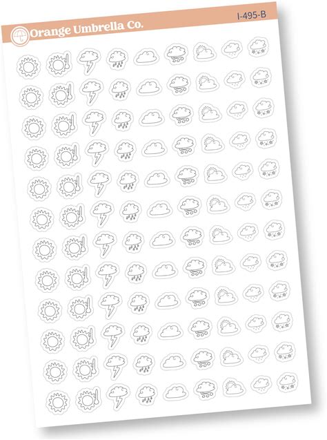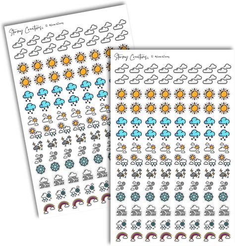 Die Cut Weather Icon Planning Stickers, 2 Sheets, 224 Total Stickers, 0.5" Wide, Multicolor, Personal Planners And Journals