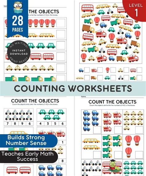 Counting Objects Worksheets | Preschool Kindergarten Math | 1 To 10 Printable | Early Learning Activity | Number Sense Worksheets PDF