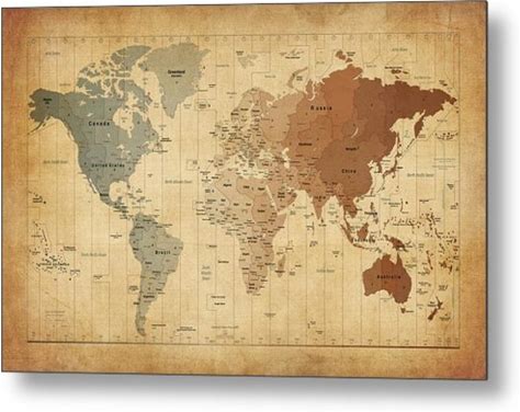 Time Zones Map Of The World Metal Print By Michael Tompsett | Vintage World Map With Time Zones