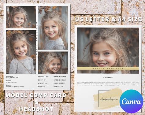 Child Comp Card For Canva: Modeling Agency Zed Card, Editable Model Portfolio, Kids Talent Composite Card, Modeling Z-Card