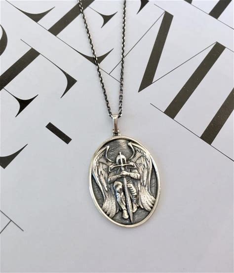 Sterling Silver St Michael Necklace - Archangel Protection Pendant - Catholic Religious Medal - Christian Jewelry Gift For Men & Women