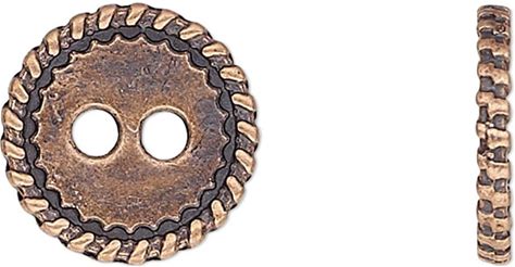 Button, Antique Copper-Plated "Pewter" (Zinc-Based Alloy), 12.5mm Double-Sided Flat Round With Rope Edge. Sold Per Pkg Of 50.