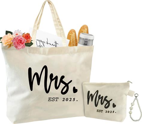 Ohtum Bridal Shower Gifts For Bride To Be Tote Bag Canvas Wedding Bag With Handle Womens Mrs Bag Bridesmaid Gifts Purse
