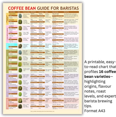 Coffee Bean Varieties Chart: Barista Brewing Guide (PDF Printable A3 Size Digital Download