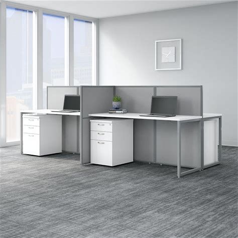 Bush Business Furniture Easy Office 60W 2 Person L Shaped Cubicle Desk With Drawers And 45H Panels In Pure White