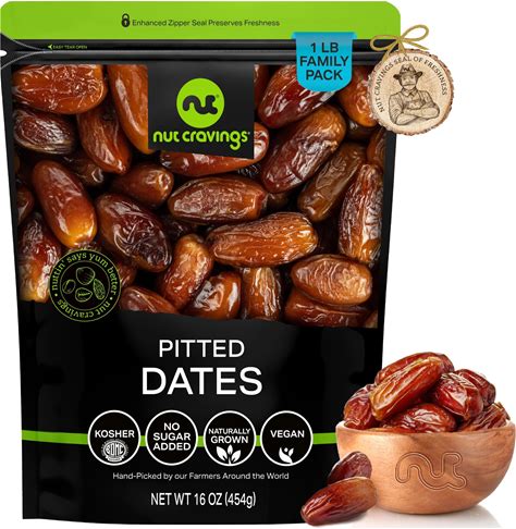 NUT CRAVINGS - Dried Deglet Noor Dates Pitted, No Sugar Added, Unsulphured (16Oz, 1 LB) Ramadan & Iftar Favorite - Sweet Healthy Snack, Vegan, Kosher,