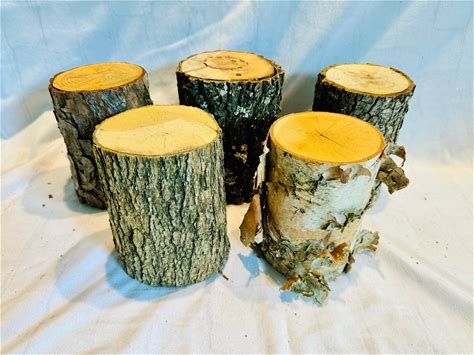 Rustic Wood Log Stumps (Set Of 5): Natural Bark Decor
