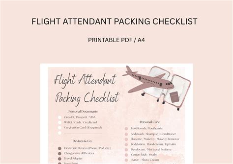 Flight Attendant Packing Checklist, Download, Printable A4