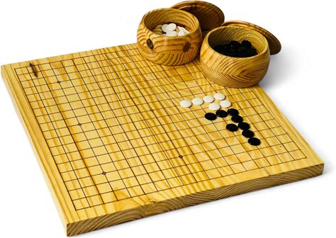 Bamboo 0.8" Etched Reversible 19X19 / 13X13 Go Game Set Board With 9.2mm Double Convex Yunzi Stones And Bamboo Wood Bowls Set - Yellow Mountain Imports