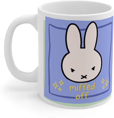 Miffed Off Bunny Mug | 11Oz Ceramic Coffee Mug, Grumpy Rabbit Illustration Miffy Themed Post It Mug