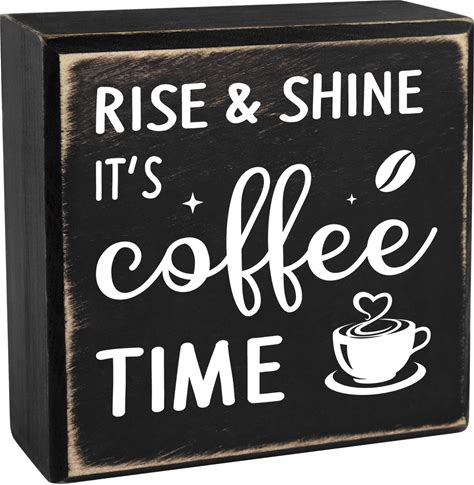 Pigort Farmhouse Coffee Bar Sign, Coffee Decorations For Home Decor, 4"X4" Wood Plaque For Home Kitchen Tabletop Decor (Coffee Time)