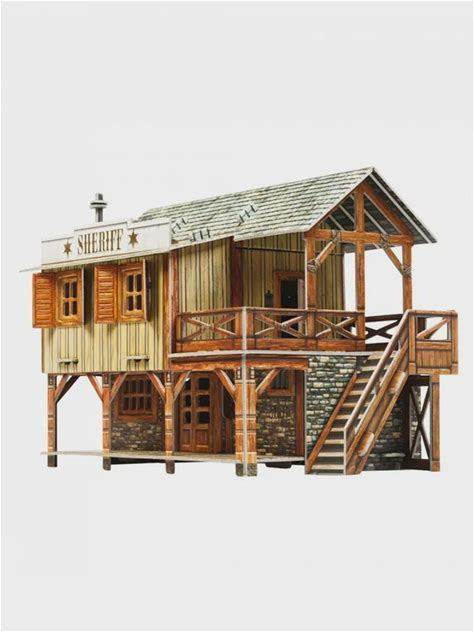 DIY 3D Cardboard Sheriff's House Model Kit - Wild West Building Puzzle - Paper Architecture Craft For Kids And Adult Collectors