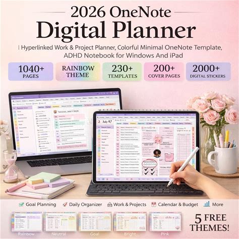 2026 Onenote Digital Planner | Hyperlinked Work & Project Planner, Colorful Minimal Onenote Template, ADHD Notebook For Windows And iPad