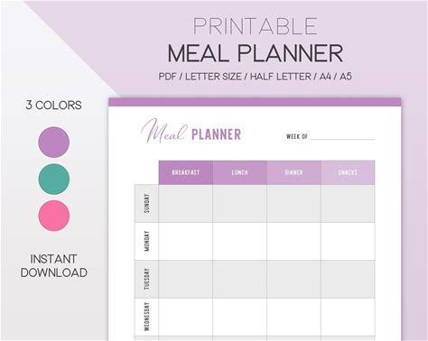 Menu Planner - Printable