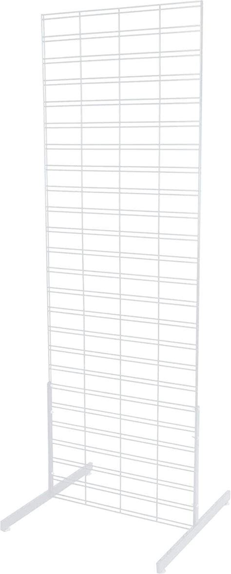 Slat Grid Panel 2' X 6' Screen Standing Display White Steel 2 Legs Fits 3"" OC
