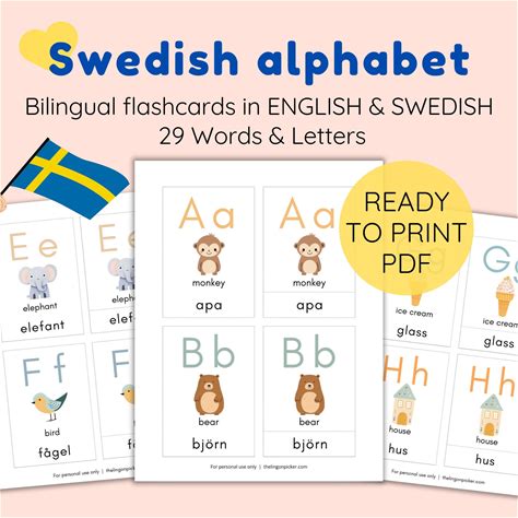 Swedish Alphabet Flashcards, Bilingual Flashcards In English And Swedish, Printable Flashcards, Learn Swedish, Montessori Cards, First Words