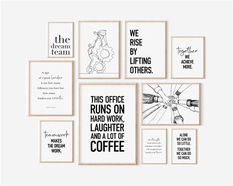 Office Wall Art, Motivational Poster, Set Of Ten Prints, Teamwork Quote, Inspirational Workplace Decor, Positive Desk Decor, HR Office Decor