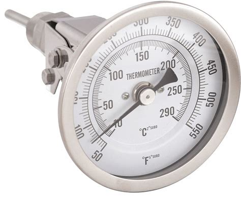 Dial Thermometer: 50F To 550F /10C To 290C, 2.5 in Stem Lg, 3 in Dial Dia Model: 1NFY5