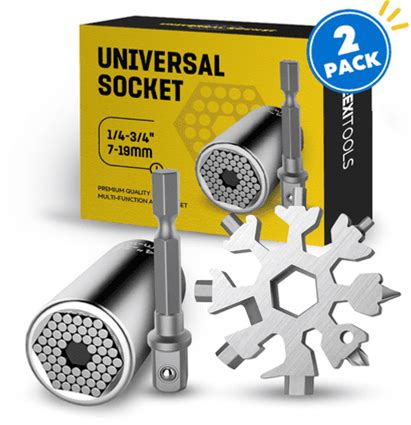 Universal Socket + Snowflake Multitool Gifts For Men Dad - 2 Pack, Socket Set With Power Drill Adapter Cool Stuff, Super Universal Socket Grip Gadgets