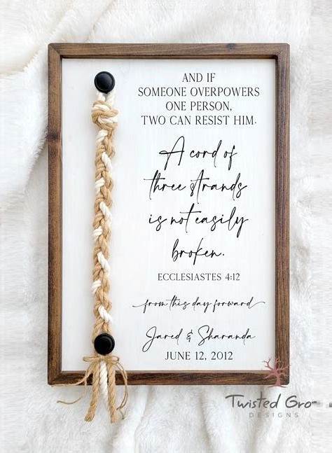A Cord Of Three Strands | What God Joined Together | Wedding Unity Ceremony Idea Braid Cord Cross Established Framed Wedding Sign Gift